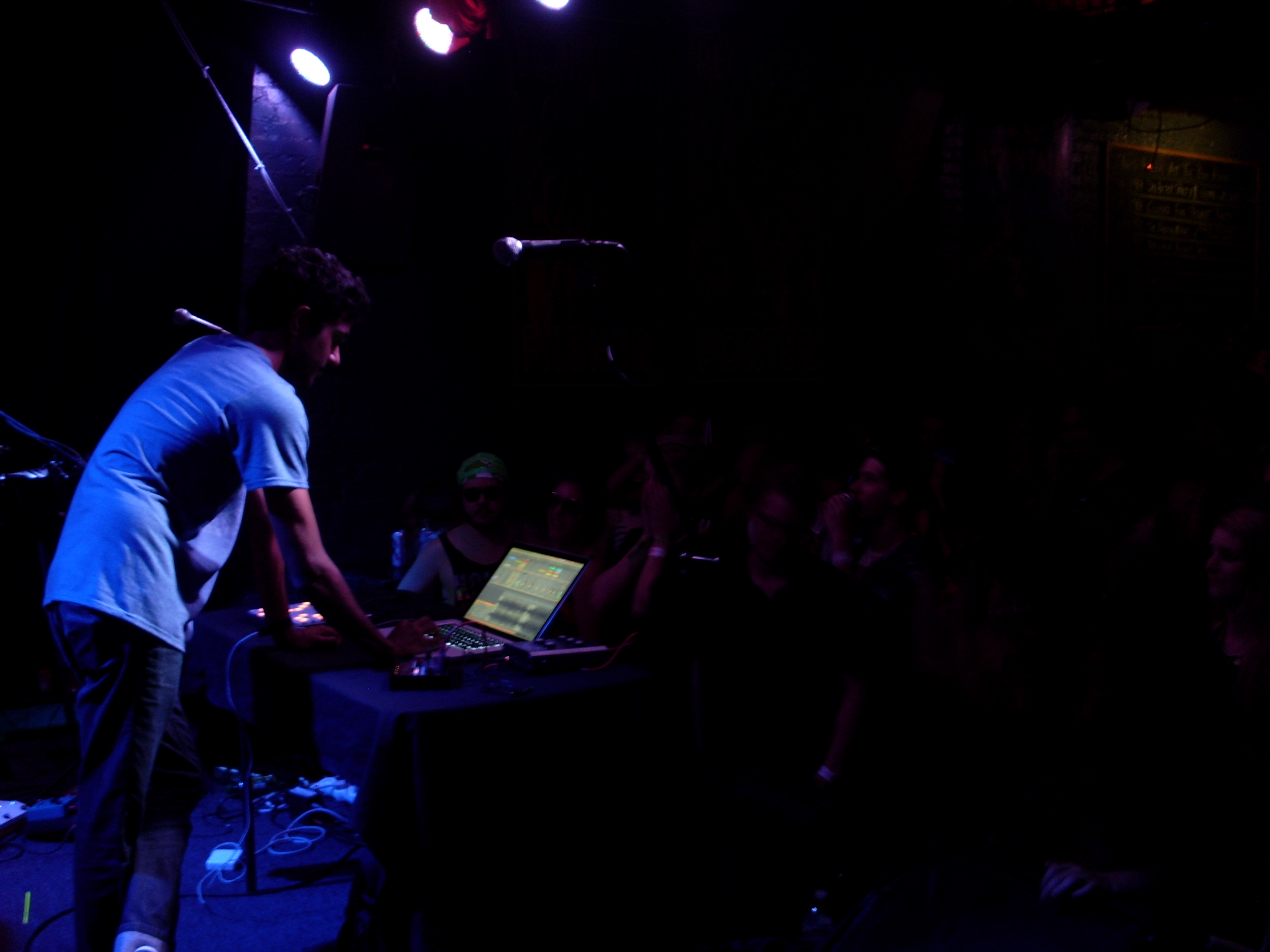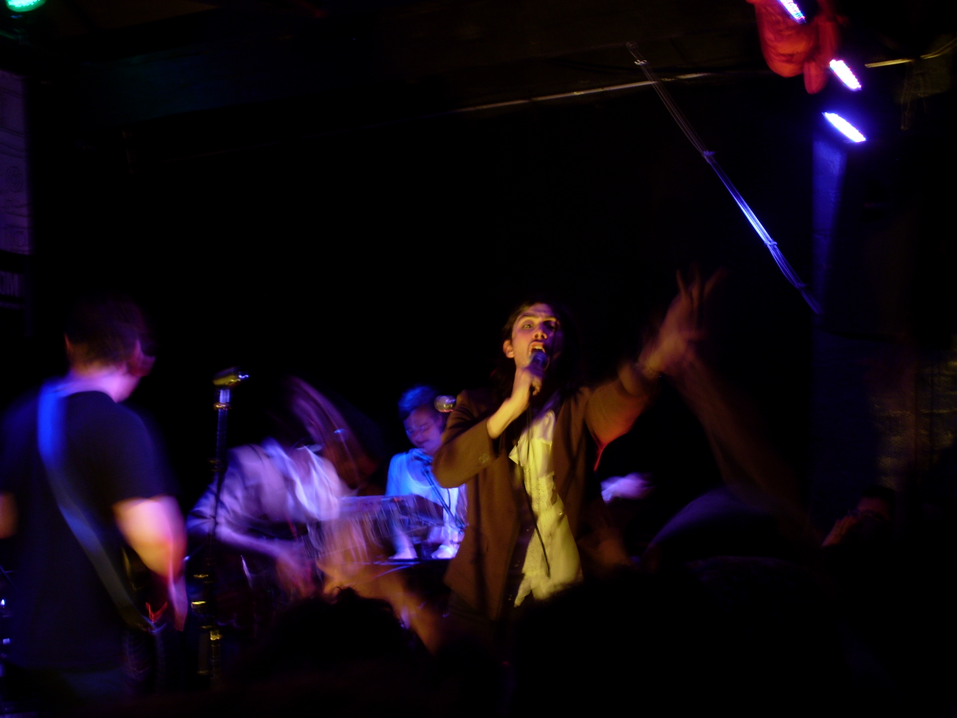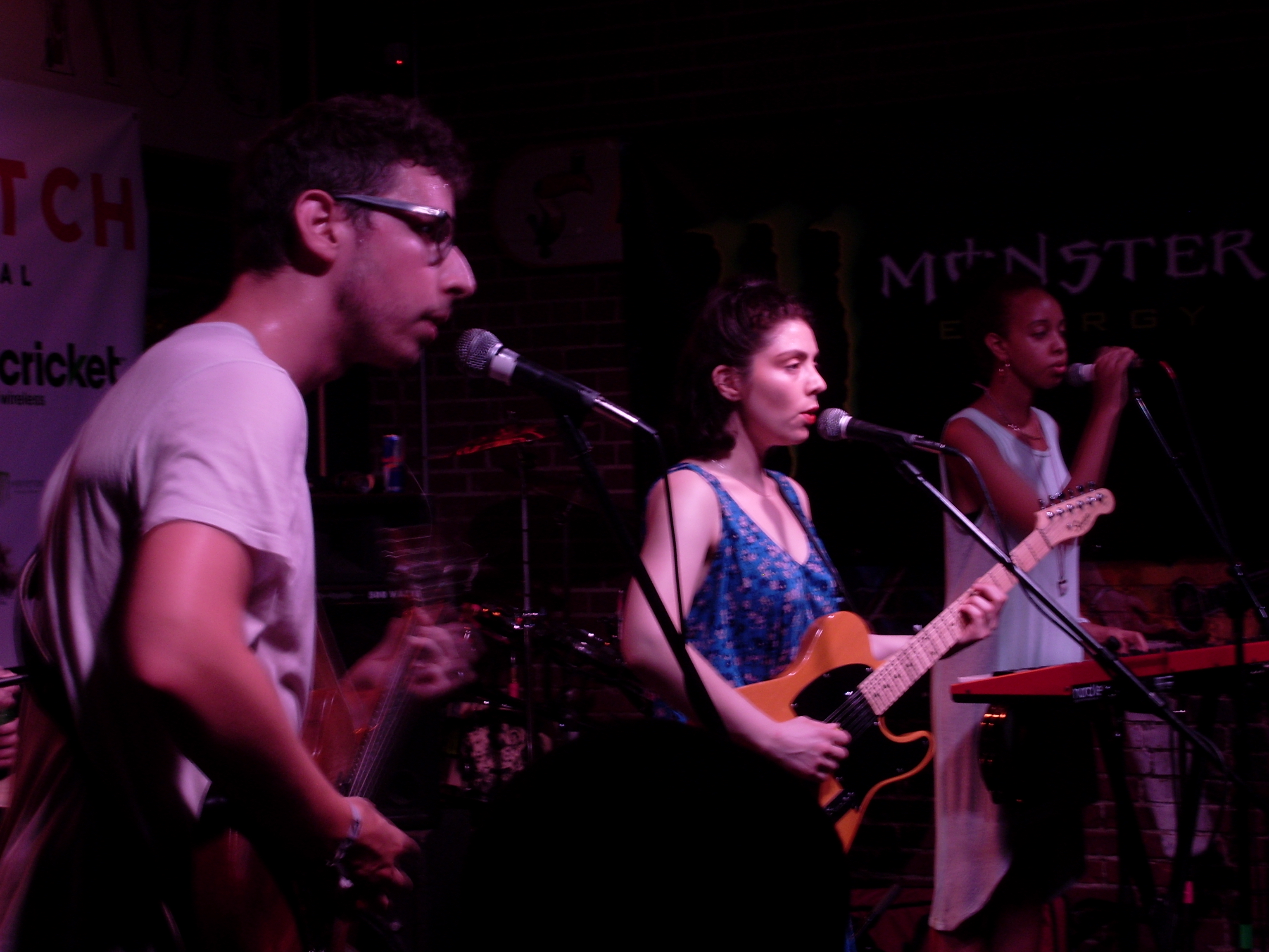 I purposefully planned my Saturday night Hopscotch schedule as little as possible. My only strategy was to see as many bands as I could. I caught about 20 minutes of the classic metal stylings of Raleigh’s Demon Eye at the Lincoln Theatre before legging it north on Wilmington where I came across the keyboard and percussion act School Dance performing on the sidewalk at the intersection with Martin. Earlier in the day it had played a set at Slim’s Spazzscotch III day party along with Brooklyn’s Ava Luna. I checked out Ava Luna at Tir Na Nog after a brief stop at The Pour House where I listened to the Raleigh beatmeister (my word) Nikhil Shah, otherwise known as Holygrailers. The performance was fine, but somewhat lacking in energy. Ava Luna was much more memorable: a collision of three-part harmonies, dance punk, indie pop, and Tom Tom Club-like excursions. It was a funky mix, and I dug it.