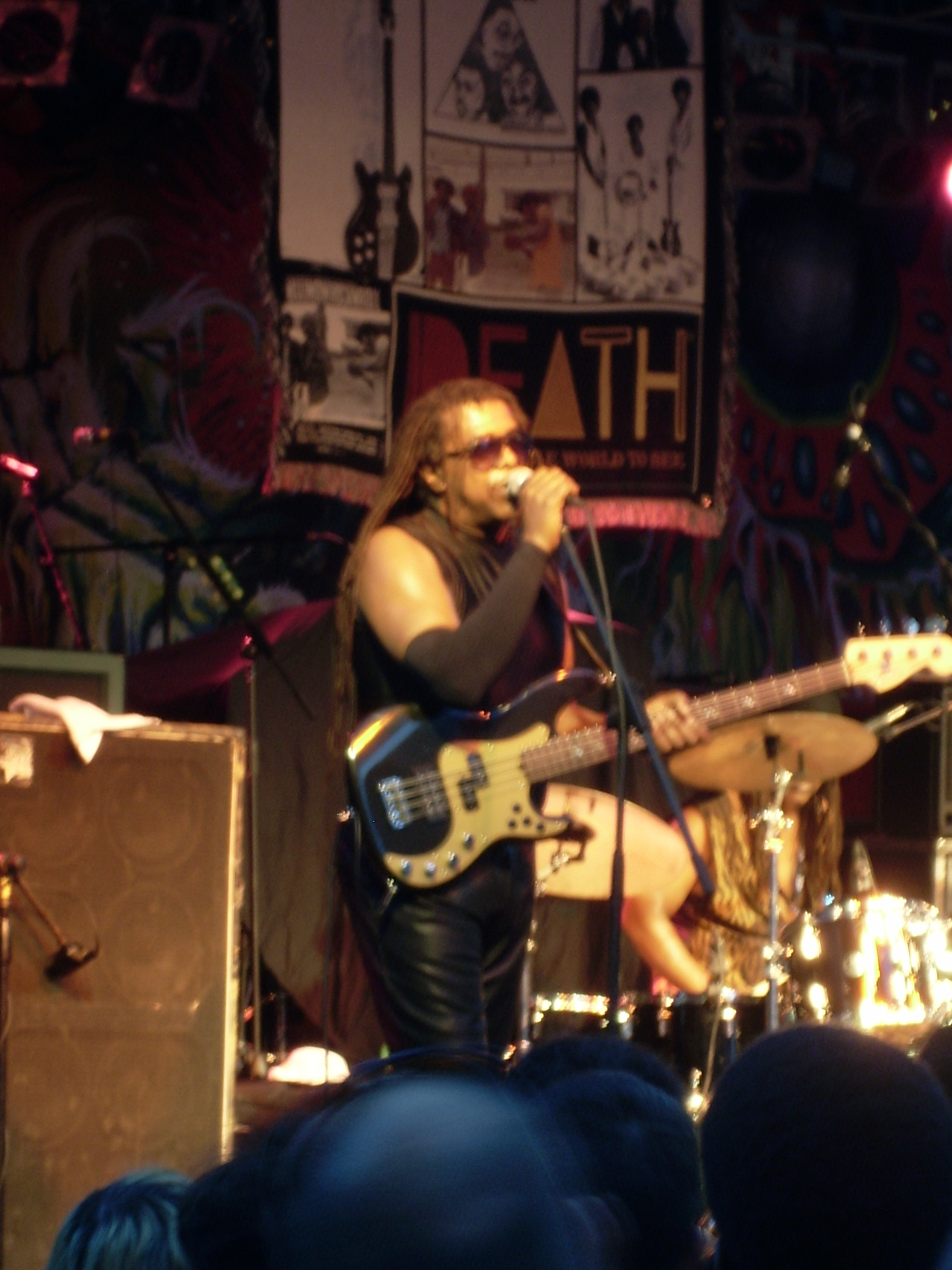 With daylight still burning, I arrived during Death’s set at the City Plaza. There’s been a resurgence of interest in the Detroit 1970s proto-punkers after the success of the 2012 documentary A Band Called Death. The band’s funky aggression went over well with the crowd. Bassist and vocalist Bobby Hackney talked of Death’s difficulty finding music industry support when it started out (the band’s name, not surprisingly, was a problem), as well as its plans for releasing new music. Although the trio sounded pretty good, I was most taken by the onstage attire of its members, which I can only describe as something that might have been found on a Mad Max Beyond Thunderdome-themed Rick James video shoot.